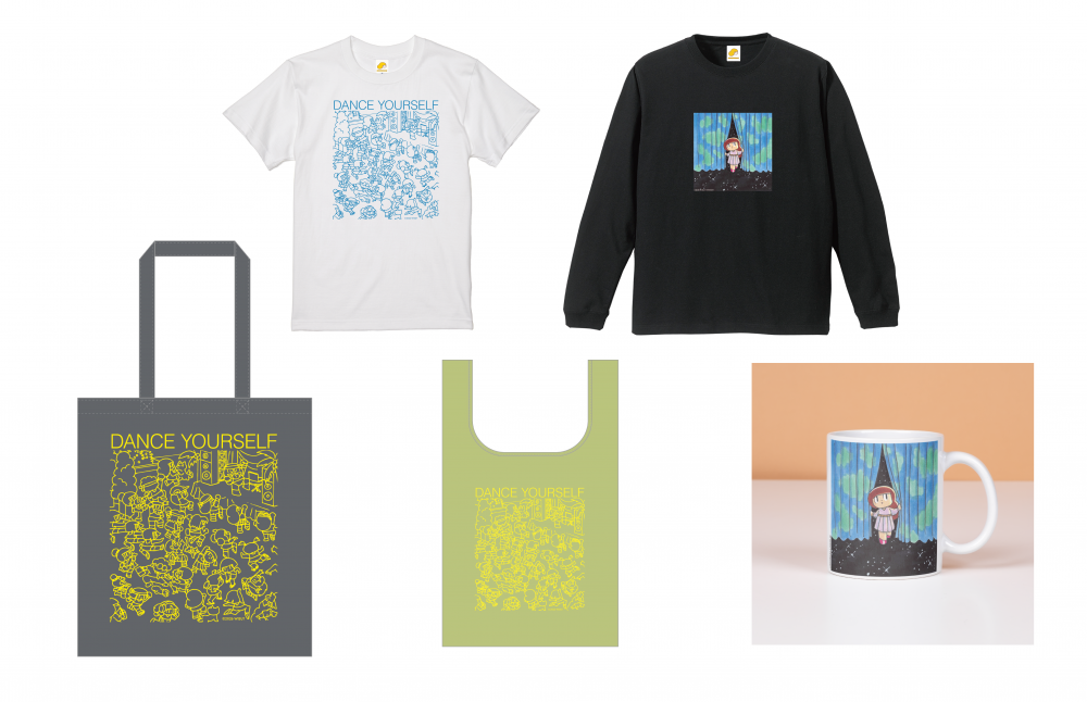 本展に合わせて制作された限定ソフビ(OIL by 美術手帖限定カラー/数量限定生産)や本展のメインビジュアル《DANCE YOURSELF》をあしらったTシャツやトートバッグ、エコバッグのほか、1月28日にリリースした、タムくん初のシングル「Hello Universe」の世界観をさりげなく楽しめるロングTシャツとマグカップなど、多種のプロダクトをご用意しました。詳細は店頭にてご確認ください。
