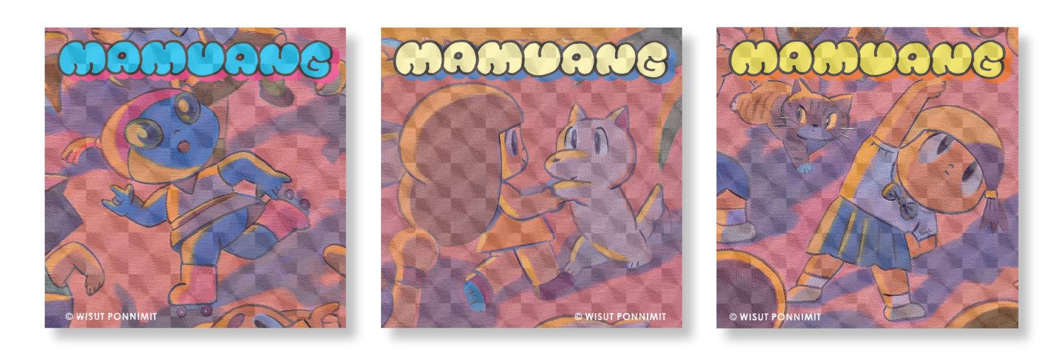 タムくん描き下ろしのマムアンちゃんとララちゃんの仲睦まじい姿が可愛く動くレンチキュラー作品。シンプルな色使いでお部屋に映える美しいアニメーションパネルです。
